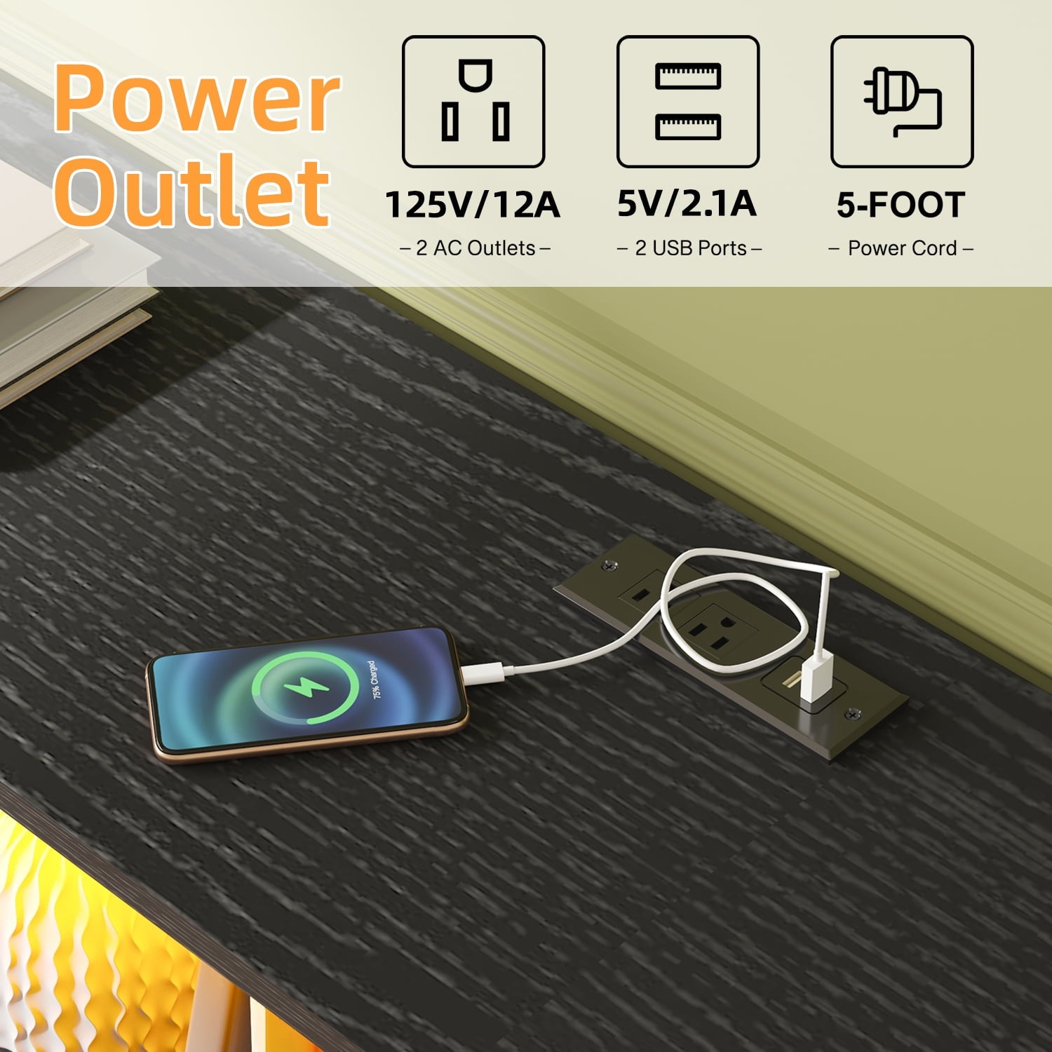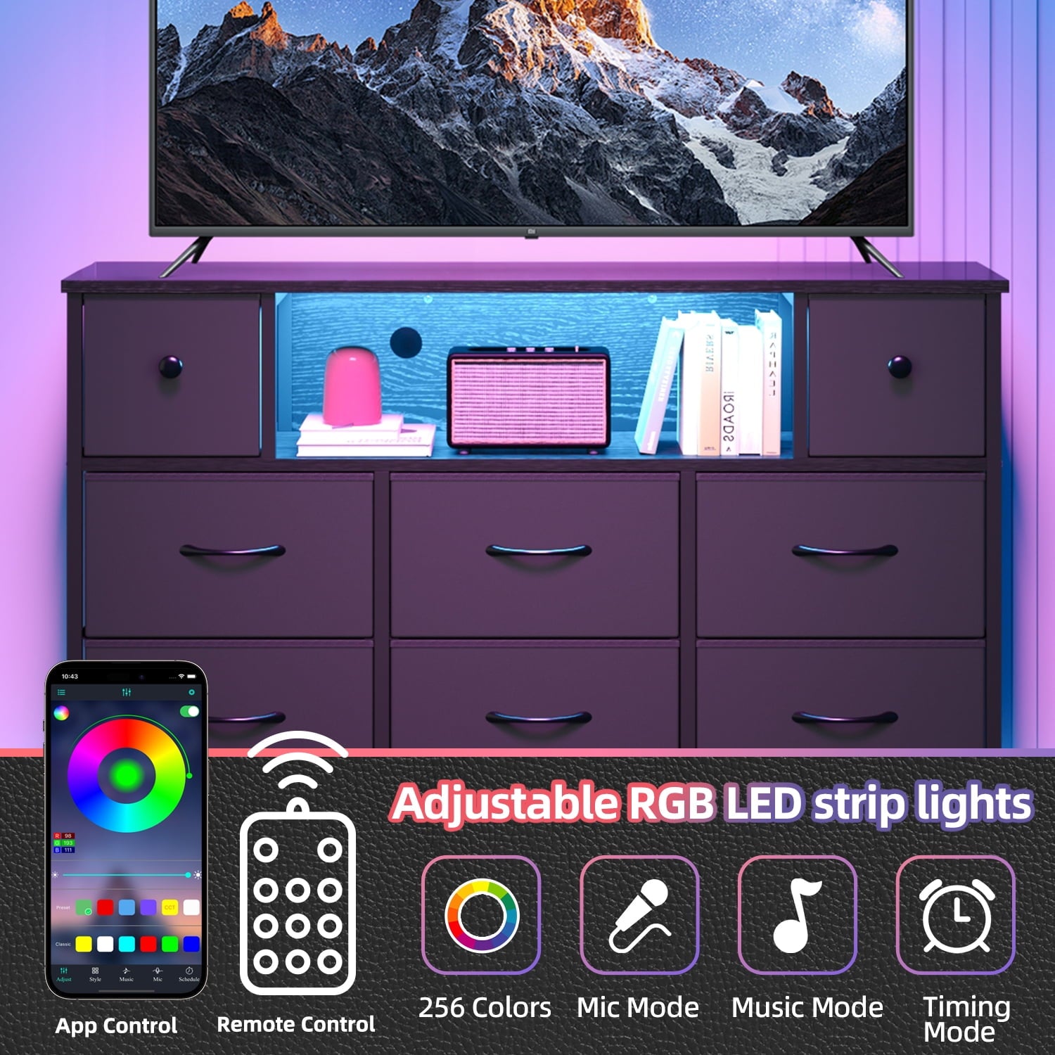 Fairy Dresser, Black 55" TV Stand with 8 Drawers, LED & Power Outlets for Bedroom, Living Room, Entryway