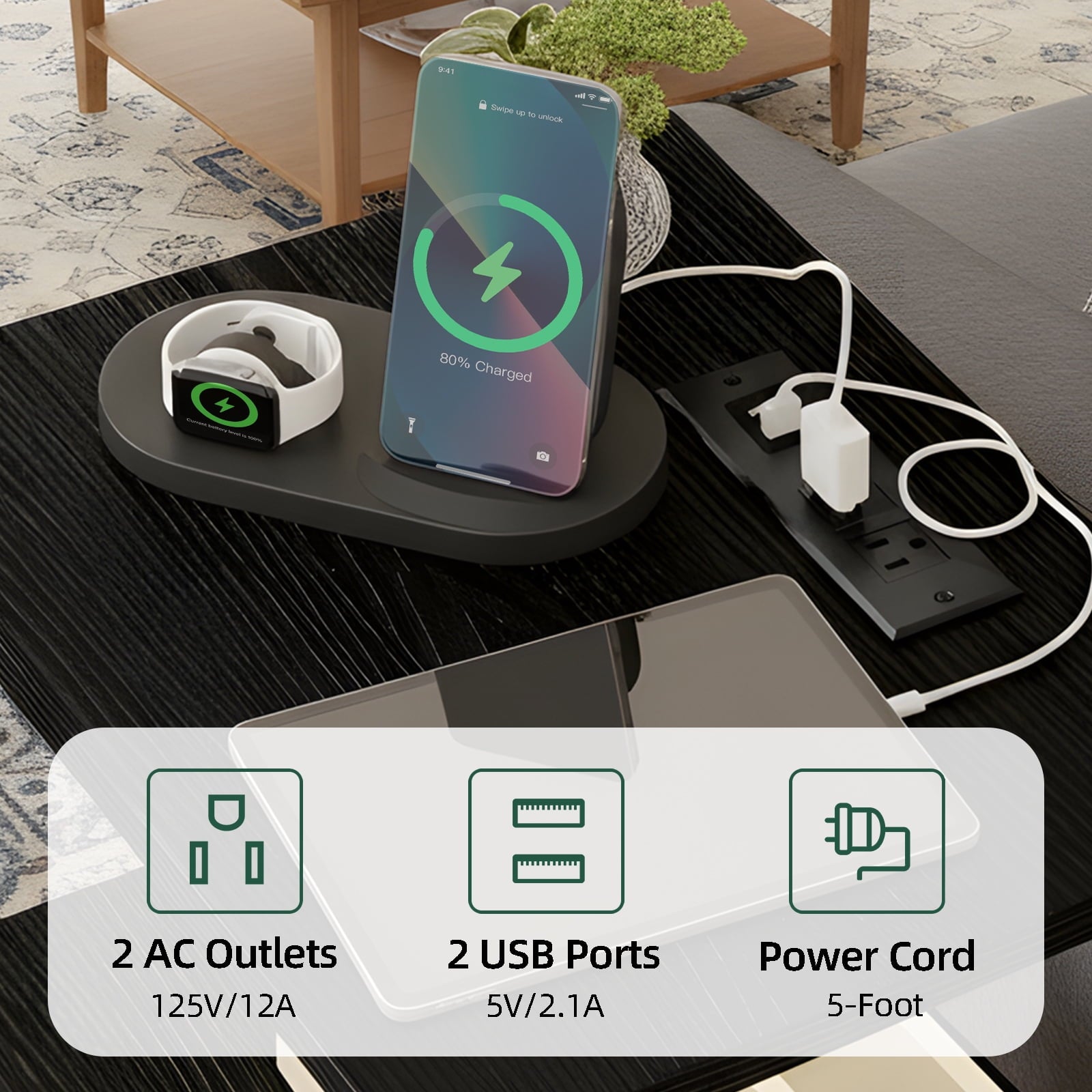 - 【Bedside Charging Hub】2 AC outlets + 2 USB ports + 5 ft cord reach any wall. Charge phone, tablet, lamp or headset at arm’s length—wake up fully powered, no more socket hunting.