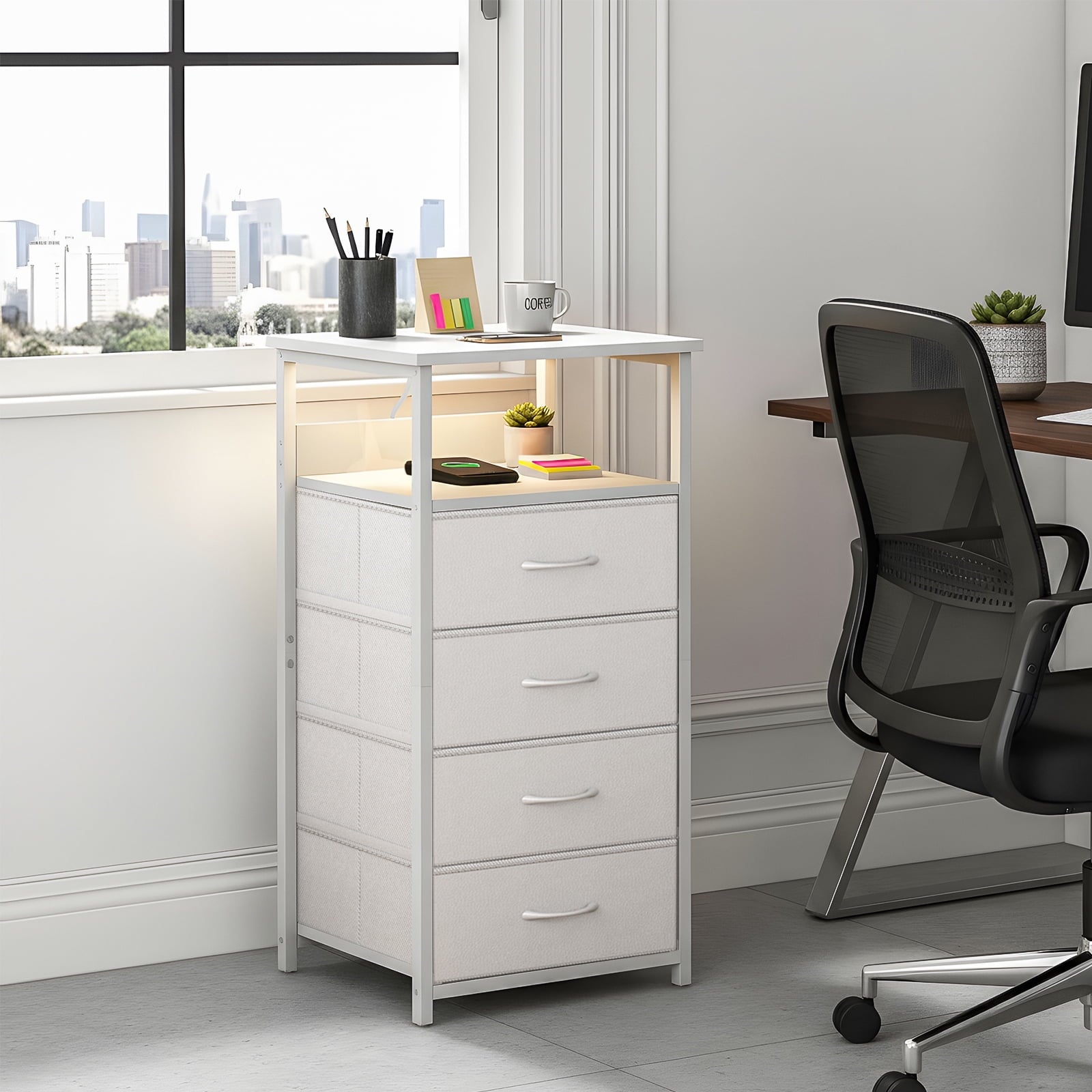 Fairy Nightstand Set of 2, 4 Drawer Night Stand with Charging Station, LED Bedside Table, Storage Side Table for Bedroom, White
