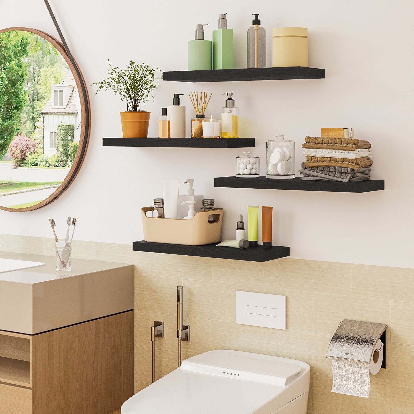 Tomnk 15.8" Floating Wall Shelves, Black Wall Shelf Set of 4, Modern Decorative Shelves with Hidden Brackets for Bedroom, Bathroom, Living Room