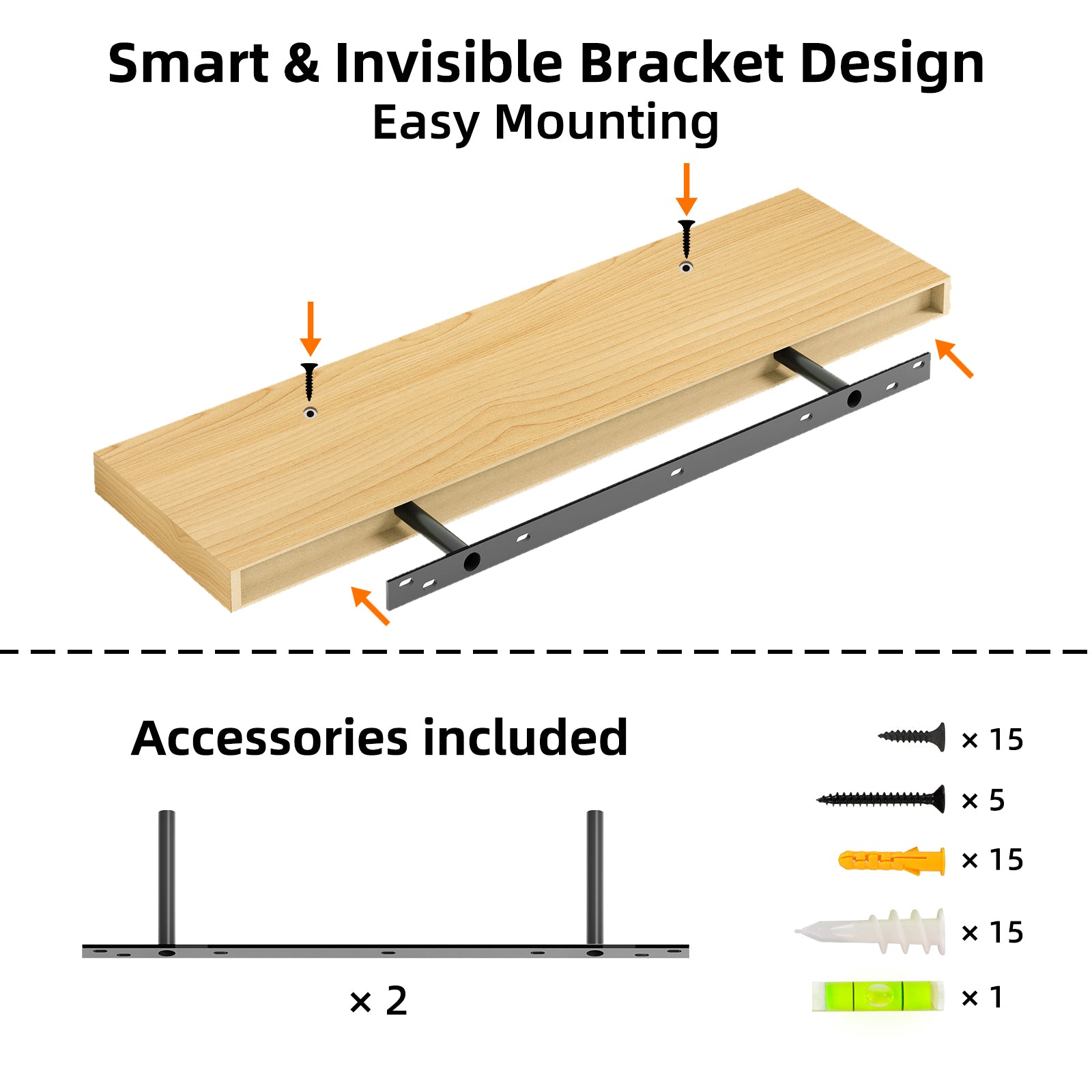 Tomnk 2pcs Floating Shelves for Wall, 22.5in Bathroom Kitchen Wall Mounted Shelves, White Oak