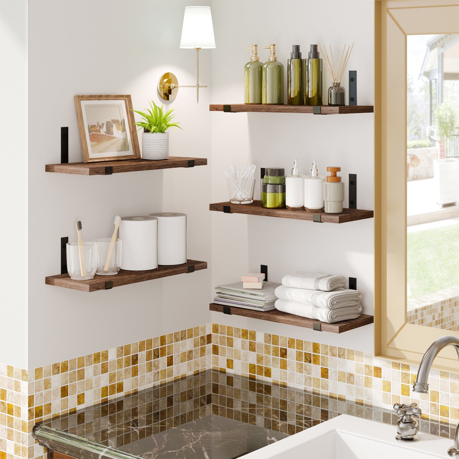 - Strong & Reliable: Each 15.7" x 4.7" x 0.6" shelf is made from high-quality paulownia wood and sturdy metal brackets, supporting up to 40 lbs securely.
