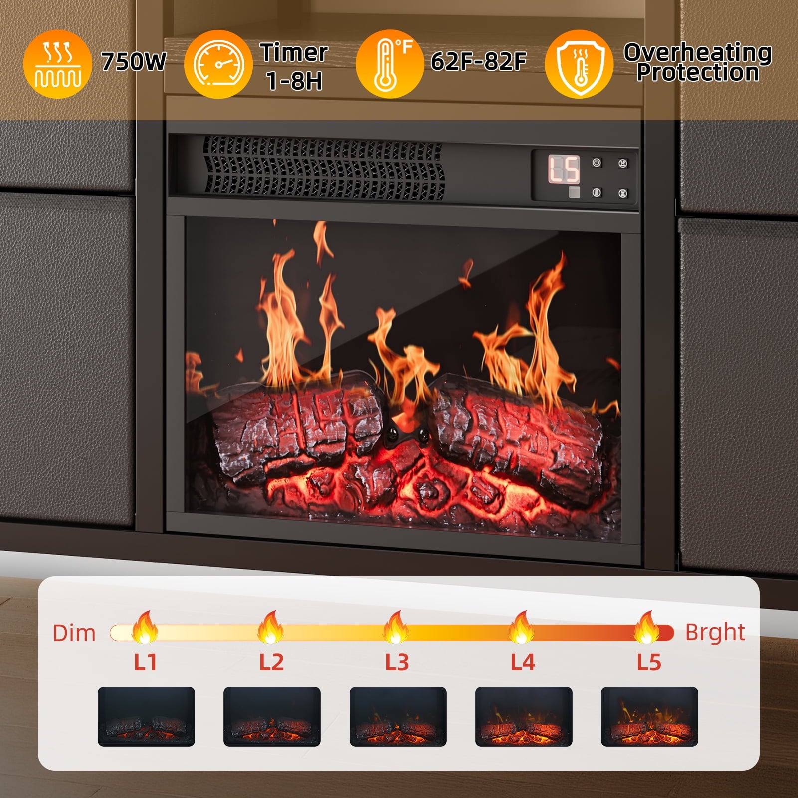 - 【Built-in Fireplace with Customizable Comfort】 Featuring a 14-inch fireplace, this TV stand brings both warmth and ambiance to your space. Easily control it using the manual buttons or included remote. Adjust the mood with 5 brightness levels and 5 flame speed settings—perfect for cozy nights in during the winter.