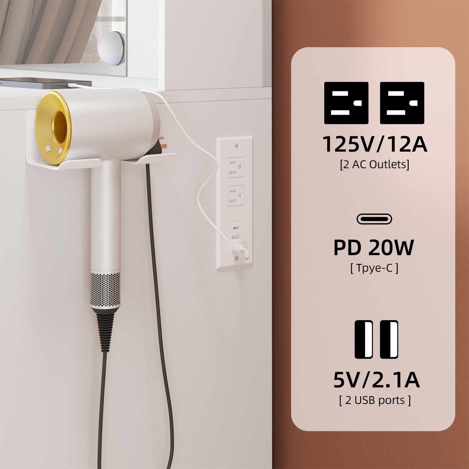 - Power Outlet with Type C: The vanity desk comes with a 5-in-1 built-in power outlet, which includes 1 fast-charging PD 20W Type C port, 2 standard outlets, and 2 USB ports.