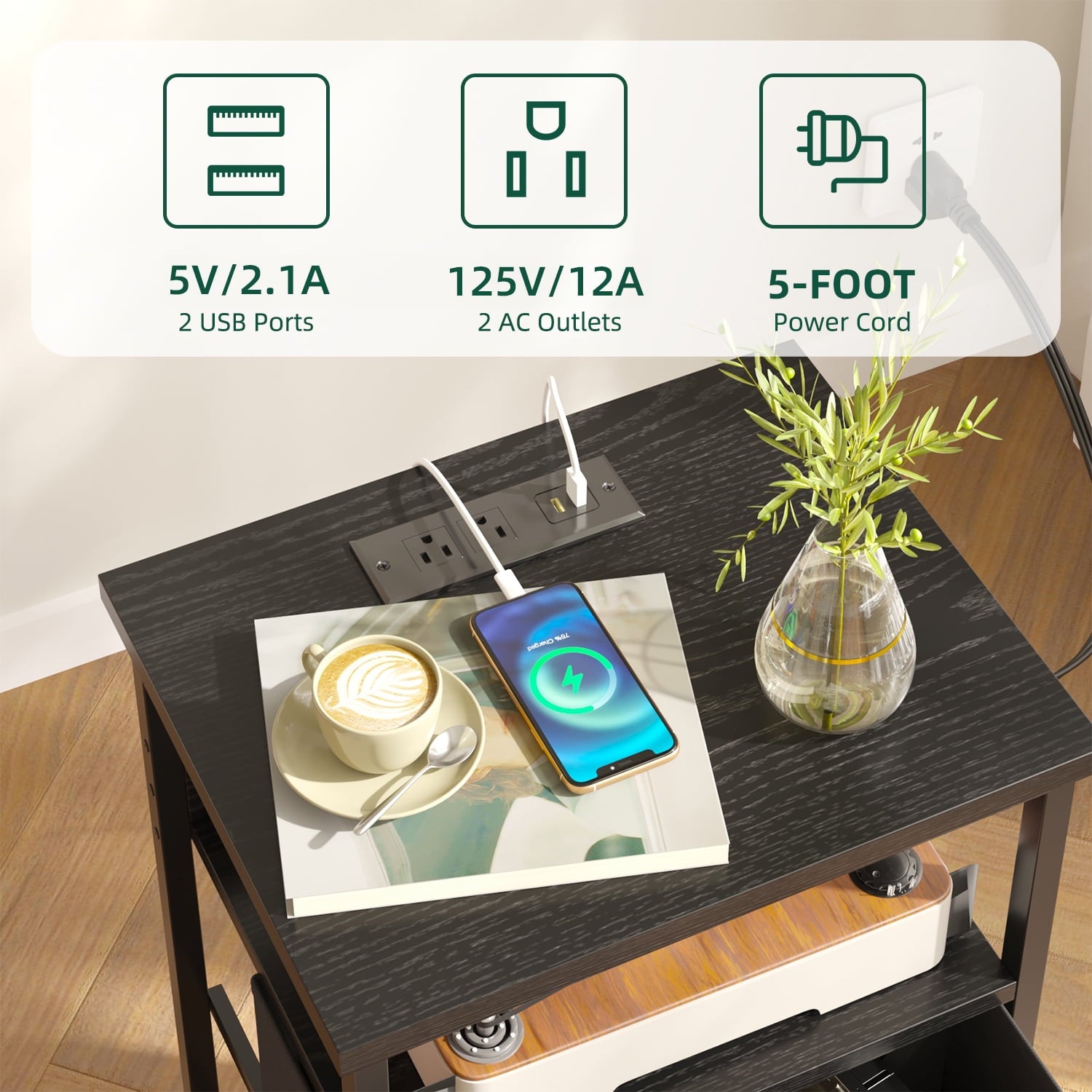 - 【Easier Charging】The nightstand is equipped with 2 AC outlets and a 5 ft long power supply cord, charging your phone, iPad, desk lamp, etc. is a breeze. No more worries about outlet shortage!