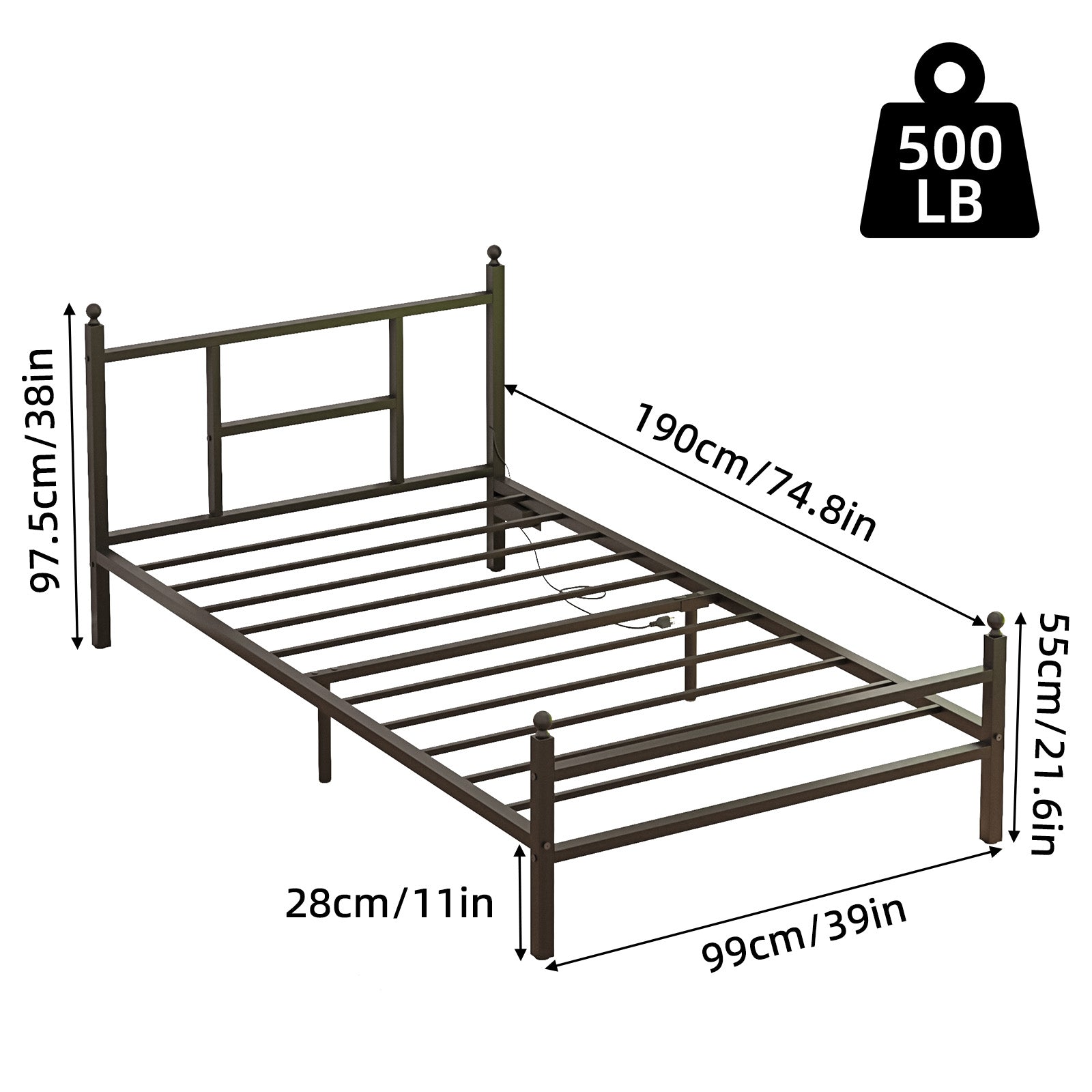 - Sturdy & Secure Design – Built for durability, this twin bed frame features a strong metal frame, a reinforced metal backrest, and built-in metal slats—no wooden slats needed. With a weight capacity of up to 500 lbs, it provides exceptional stability and support for a restful night’s sleep.