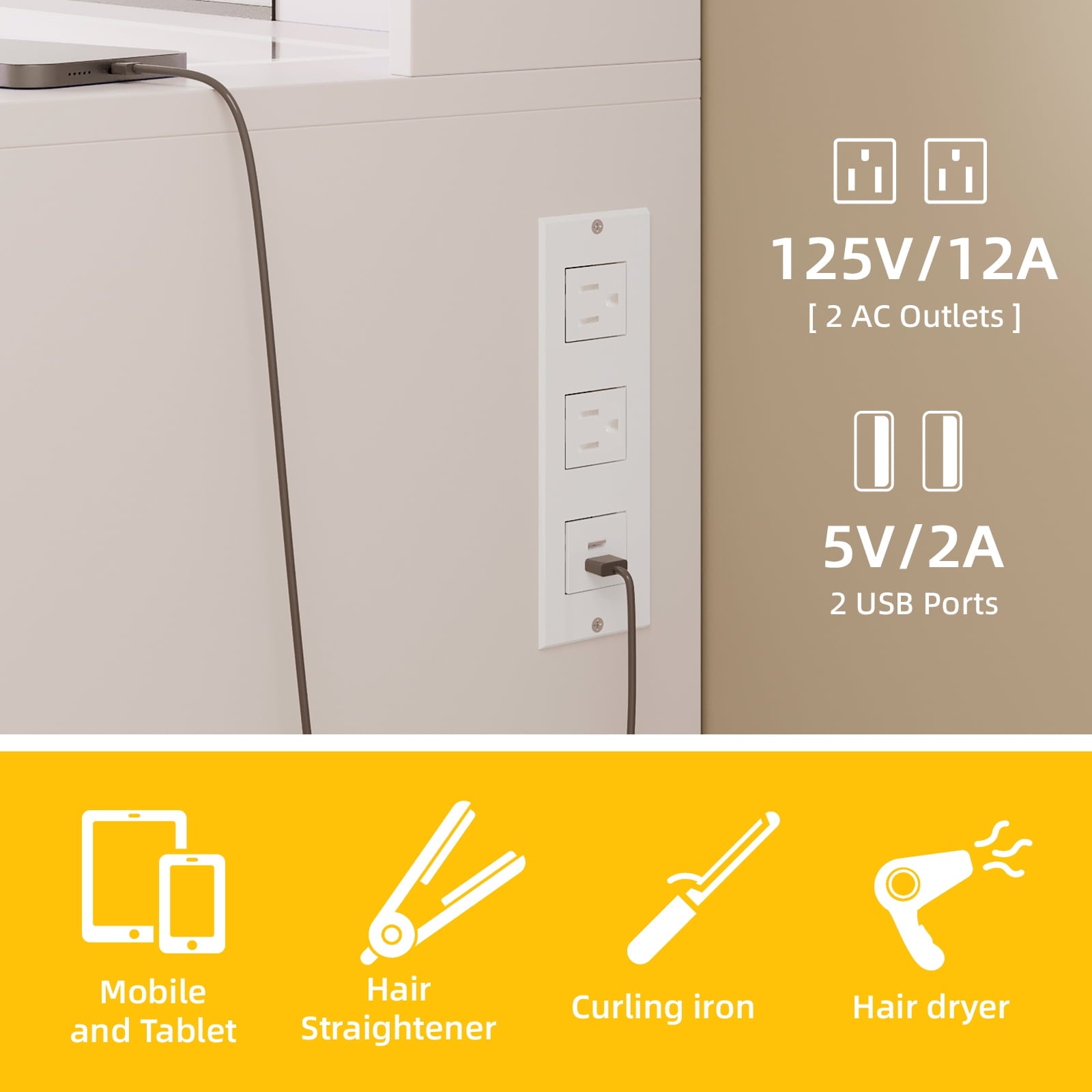 - 【Hollywood-Style Lighting】Designed with 10 hidden-wire Hollywood bulbs, this vanity offers adjustable lighting with 3 colors and 3 brightness levels. Whether for daily makeup, skincare, or evening glam, you can always achieve the perfect lighting atmosphere at the touch of a button.